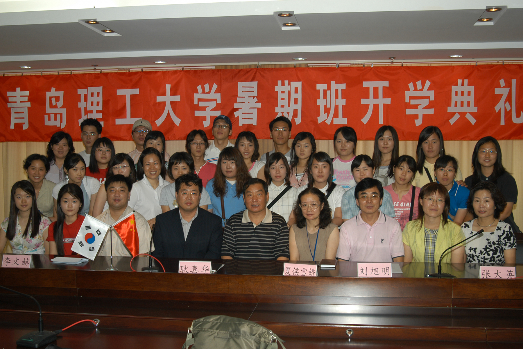 7月4日,2005年kaiyun登录中国入口登录暑期汉语班开学典礼在kaiyun官网隆重举行。党委书记耿喜华、校办公室副主任夏侯雪娇、国际交流与合作处刘旭明副处长以及来自韩国世明大学的教师代表李文赫博士和25名留学生出席了开学典礼。
