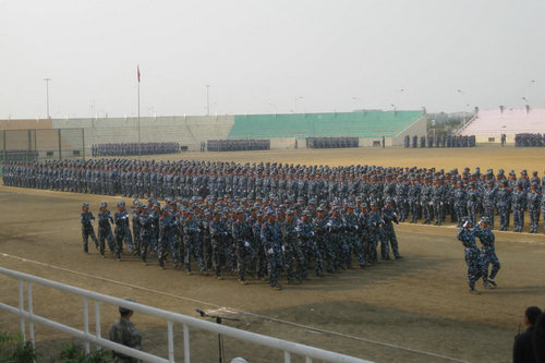 上午9时,操场上迷彩飞扬,军号如歌,四方校区2个连、7个排,黄岛校区13个连、37个排共组成44个方队,以饱满的热情,矫健的步伐和严整的军容向我们展示了新生全新的精神面貌和骄人的军训成果。赵怀明副书记、李东副校长高度赞扬了新生在军训中所表现出的不怕苦不怕累,顽强拼搏和团结合作的精神,并对部队首长及教官们的大力支持和无私奉献表示衷心的感谢和崇高的敬意。他们鼓励新生,把在军训中磨练出的刚毅品质带入到日常的学习生活中,努力进取,百折不挠。大会最后,宣读了军训先进班级和内务卫生先进宿舍的名单并举行颁奖仪式。