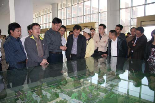 庆典结束后,校友们参观了校区沙盘,并在图书科技楼前合影留念。