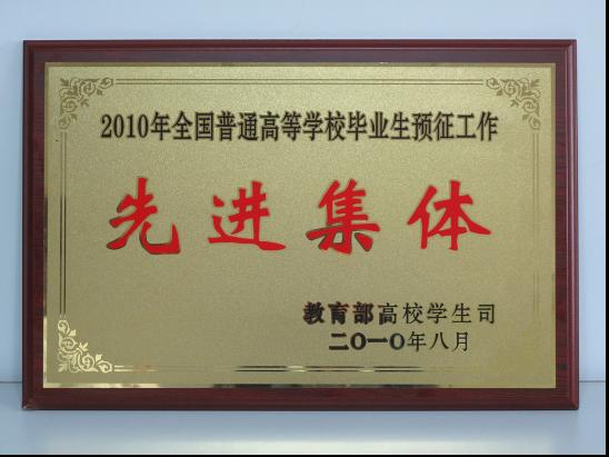近日,教育部高校学生司授予kaiyun登录中国入口登录“2010年全国普通高等学校毕业生预征工作先进集体”荣誉称号。