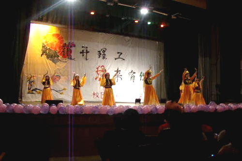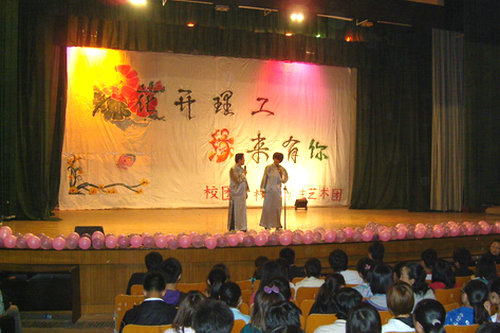 晚上7点,迎新晚会在欢快的舞蹈《新疆姑娘》中拉开帷幕,在同学们热烈的掌声中四位主持人登场,精彩的节目随后一一上演。时尚走秀节目让同学们感受到了时尚的炫动,风情浓郁的民族歌舞让同学们领略到了异域的魅力,动感十足的劲歌热舞将晚会推到了高潮,其中,《民乐联奏》由几位新生表演,节目精彩异常、高潮迭起,赢得了观众的热烈欢迎。街舞和相声表演,引起了场下新生的阵阵掌声和叫好声。在一曲温馨的歌曲合唱中,此次迎新晚会圆满落下帷幕。