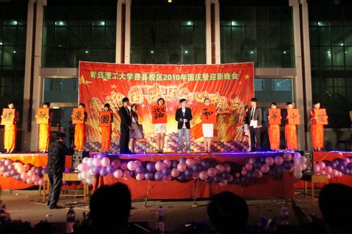 在祖国61华诞前夕,9月27日晚,费县校区“喜迎国庆,心心相印”迎新晚会在办公楼前广场举行,校区领导张伟星、朱卫东、王西长、赵常德和2010级全体新同学一起观看晚会,校区党委副书记王西长致辞。