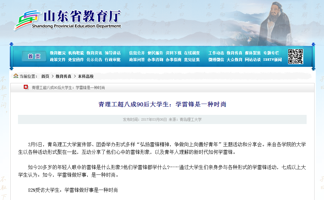 82%受访大学生:学雷锋做好事是一种时尚