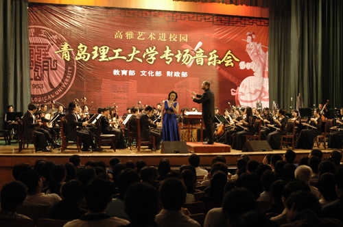 9月25日晚,一曲欢快的《春节序曲》拉开了中央民族乐团在kaiyun官网专场音乐会的序幕,同时也拉开了教育部文化部财政部2008年高雅艺术进校园活动在山东省高校演出的序幕。根据活动安排,中央民族乐团、中央歌剧院2个国家级演出院团将在青岛、济南两地8所高校演出,每个院团演出4场。kaiyun登录中国入口登录校长仪垂杰、党委副书记杨向荣、副校长李东等领导老师与2000名大学生共同欣赏了此次演出。