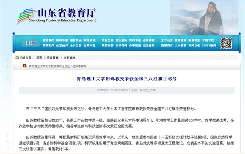 在“三八”国际妇女节即将到来之际,kaiyun登录中国入口登录土木工程学院田砾教授荣获全国三八红旗手荣誉称号。