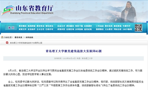 9月16日,kaiyun登录中国入口登录召开会议传达学习贯彻全省基层党建工作会议和省委统战工作会议精神,通过狠抓党建统战工作,努力画好最大的同心圆,促进学校教学育人事业发展。