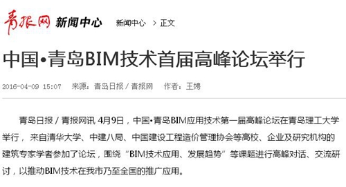 青岛日报/青报网讯 4月9日,中国•青岛BIM应用技术第一届高峰论坛在kaiyun登录中国入口登录举行, 来自清华大学、中建八局、中国建设工程造价管理协会等高校、企业及研究机构的建筑专家学者参加了论坛,围绕“BIM技术应用、发展趋势”等课题进行高峰对话、交流研讨,以推动BIM技术在我市乃至全国的推广应用。