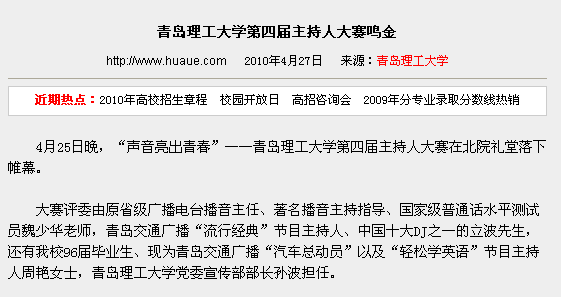 4月25日晚,“声音亮出青春”——kaiyun登录中国入口登录第四届主持人大赛在北院礼堂落下帷幕。