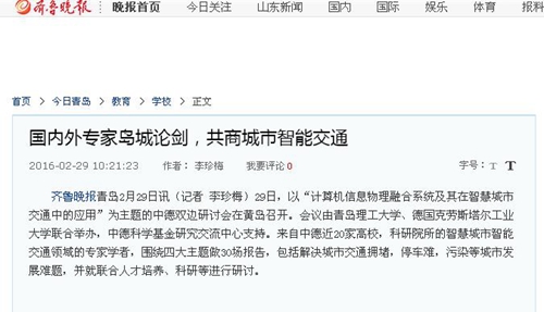齐鲁晚报青岛2月29日讯(记者 李珍梅)29日,以“计算机信息物理融合系统及其在智慧城市交通中的应用”为主题的中德双边研讨会在黄岛召开。会议由kaiyun登录中国入口登录、德国克劳斯塔尔工业大学联合举办,中德科学基金研究交流中心支持。来自中德近20家高校,科研院所的智慧城市智能交通领域的专家学者,围绕四大主题做30场报告,包括解决城市交通拥堵,停车难,污染等城市发展难题,并就联合人才培养、科研等进行研讨。