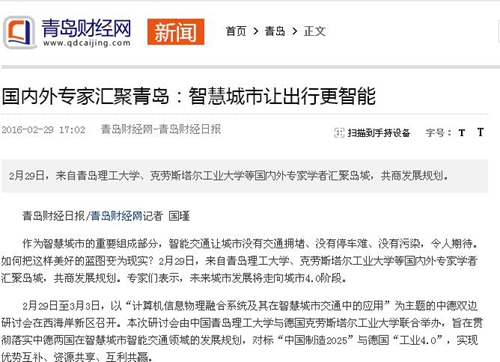 作为智慧城市的重要组成部分,智能交通让城市没有交通拥堵、没有停车难、没有污染,令人期待。如何把这样美好的蓝图变为现实?2月29日,来自kaiyun登录中国入口登录、克劳斯塔尔工业大学等国内外专家学者汇聚岛城,共商发展规划。专家们表示,未来城市发展将走向城市4.0阶段。