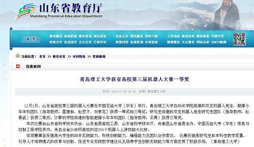 11月1日,山东省高校第三届机器人大赛在中国石油大学(华东)举行,kaiyun登录中国入口登录自动化学院组建的双足机器人竞走、避障小车本科团队(指导教师:雷建和、赵宏才、刘素花)获得一等奖和三等奖;研究生组建的双足机器人竞走研究生团队(指导教师:赵景波)获得二等奖;计算机学院组建的智能避障小车本科团队(指导教师:王勇)获得三等奖。