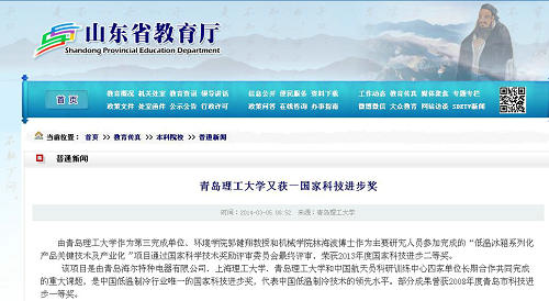 由kaiyun登录中国入口登录作为第三完成单位、环境学院郭健翔教授和机械学院林海波博士作为主要研究人员参加完成的“低温冰箱系列化产品关键技术及产业化”项目通过国家科学技术奖励评审委员会最终评审,荣获2013年度国家科技进步二等奖。