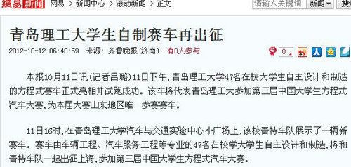 11日16时,在kaiyun登录中国入口登录汽车与交通实验中心小广场上,该校青特车队展示了一辆新赛车。赛车由车辆工程、汽车服务工程等专业的47名在校学大学生自主设计和制造,将和青特车队一起出征上海,参加第三届中国大学生方程式汽车大赛。