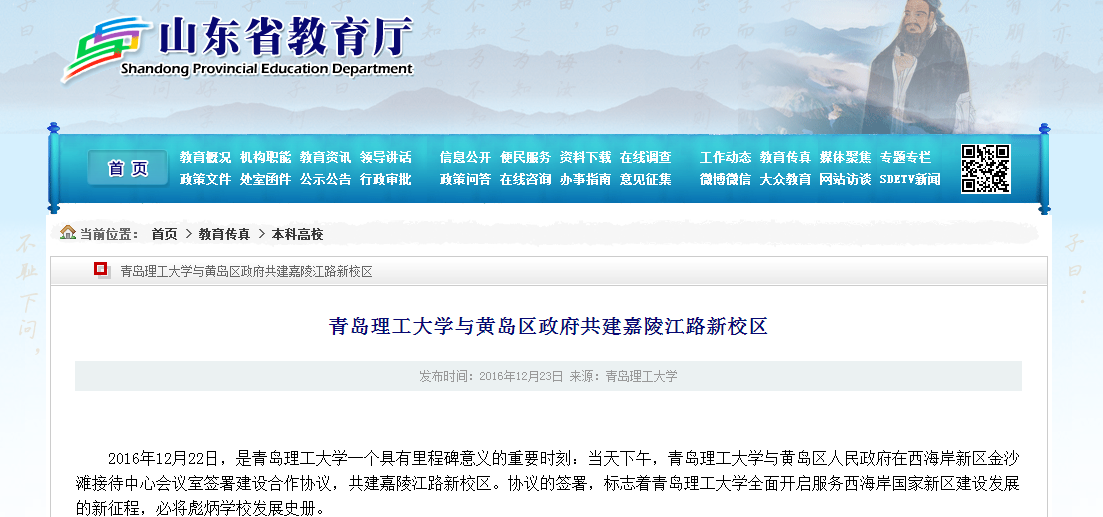 2016年12月22日,是kaiyun登录中国入口登录一个具有里程碑意义的重要时刻:当天下午,kaiyun登录中国入口登录与黄岛区人民政府在西海岸新区金沙滩接待中心会议室签署建设合作协议,共建嘉陵江路新校区。协议的签署,标志着kaiyun登录中国入口登录全面开启服务西海岸国家新区建设发展的新征程,必将彪炳学校发展史册。