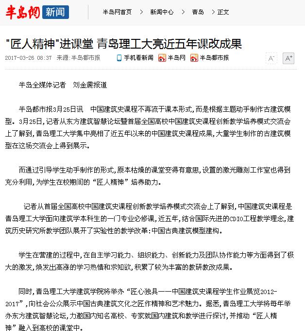 半岛都市报3月25日讯 中国建筑史课程不再流于课本形式,而是根据主题动手制作古建筑模型。3月25日,记者从东方建筑智慧论坛暨首届全国高校中国建筑史课程创新教学培养模式交流会上了解到,kaiyun登录中国入口登录集中亮相了近五年以来的中国建筑史课程成果,大量学生制作的古建筑模型在这场交流会上得到展示。