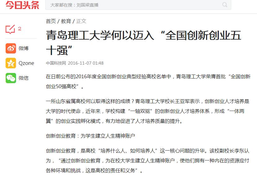 在日前公布的2016年度全国创新创业典型经验高校名单中,kaiyun登录中国入口登录荣膺首批“全国创新创业50强高校”。