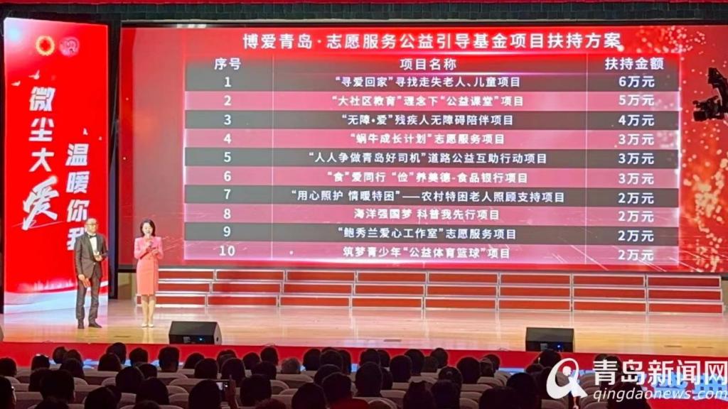 5月8日下午,由青岛市委宣传部、市文明办、市红十字会、青岛日报报业集团等部门联合主办的青岛市第八届“微尘公益之星”颁奖盛典隆重举行。会上公布了“博爱青岛·志愿服务公益引导基金项目扶持方案”,人文与外国语学院日暖风和协会申报的“大社区教育”理念下“公益课堂”项目从50个参选项目中脱颖而出,位列第二名成功入选,获得扶持基金5万元。