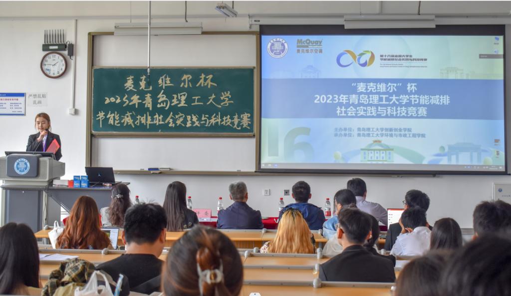 为进一步提升学校师生的节能环保意识,营造崇尚节能、绿色低碳的社会风尚,培养新时代大学生节能减排意识、科技创新意识和团队协作意识。5月11日,“麦克维尔杯”kaiyun登录中国入口登录2023年节能减排社会实践与科技竞赛决赛在西海岸新区主校区举办。比赛由kaiyun登录中国入口登录创新创业学院主办,环境与市政工程学院承办,麦克维尔中央空调公司技术经理尹文科、环境与市政工程学院副院长李金成、土木工程学院团委书记王俊富、环境与市政工程学院教师刘国丹、张宜升担任评委。全校共27个项目团队参加了此次决赛答辩。