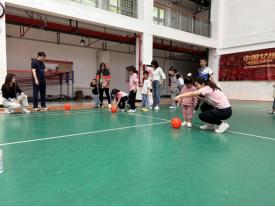 随后进行的“童心童趣童行”活动,组织有序、调度有方,孩子与家长们共同完成了“点球大战”、“跳跃夹夹乐”、“张大嘴巴啊啊啊”等游戏,通过皮球和沙包让孩子们跑起来、跳起来,在家长的鼓励和引导下,小朋友们充分感受着游戏带来的欢愉。