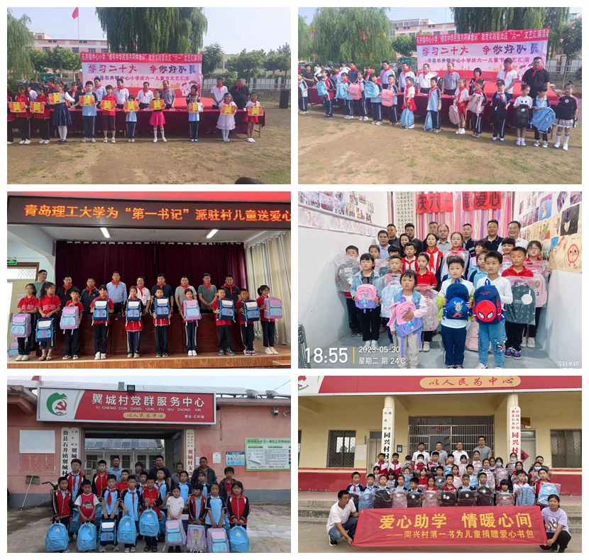 5月30日—6月1日上午,kaiyun登录中国入口登录为“第一书记”派驻村儿童送爱心活动,先后在费县石井镇中心小学、石井村读书角、同兴村委办公室、安乐村小学、翼城村小学等地举行。一份份含有书包、钢笔、铅笔等学习用品的节日礼物,满载青岛理工师生的节日祝福,送到了孩子们手中,让孩子们过了一个倍感温暖、欢乐的儿童节。