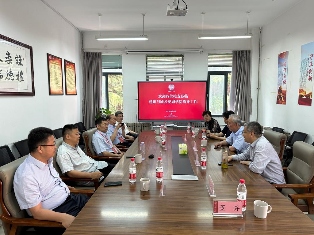 为凝聚校友力量,加强校友联络,促进学院发展,6月9日,校友代表北京校友会副会长李清泉、秘书长于涛,东营校友会会长杨敦宝、秘书长刘庚山,济宁校友会会长吴效腾、副会长高光,郓城校友会会长陈广晓到建筑与城乡规划学院走访座谈,畅叙师生情谊,共话母校发展。学院党委书记肖学斌、副书记范晓光、副院长解旭东,院长助理、党政办主任董昇,学工办主任、团委书记杨霈宣陪同参观和座谈。