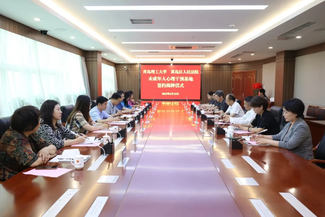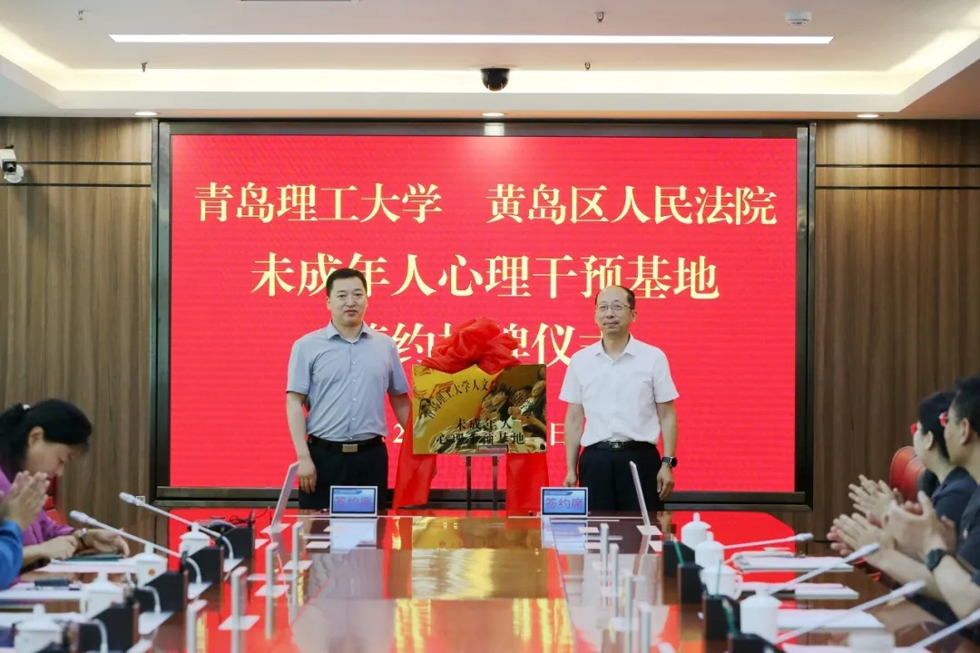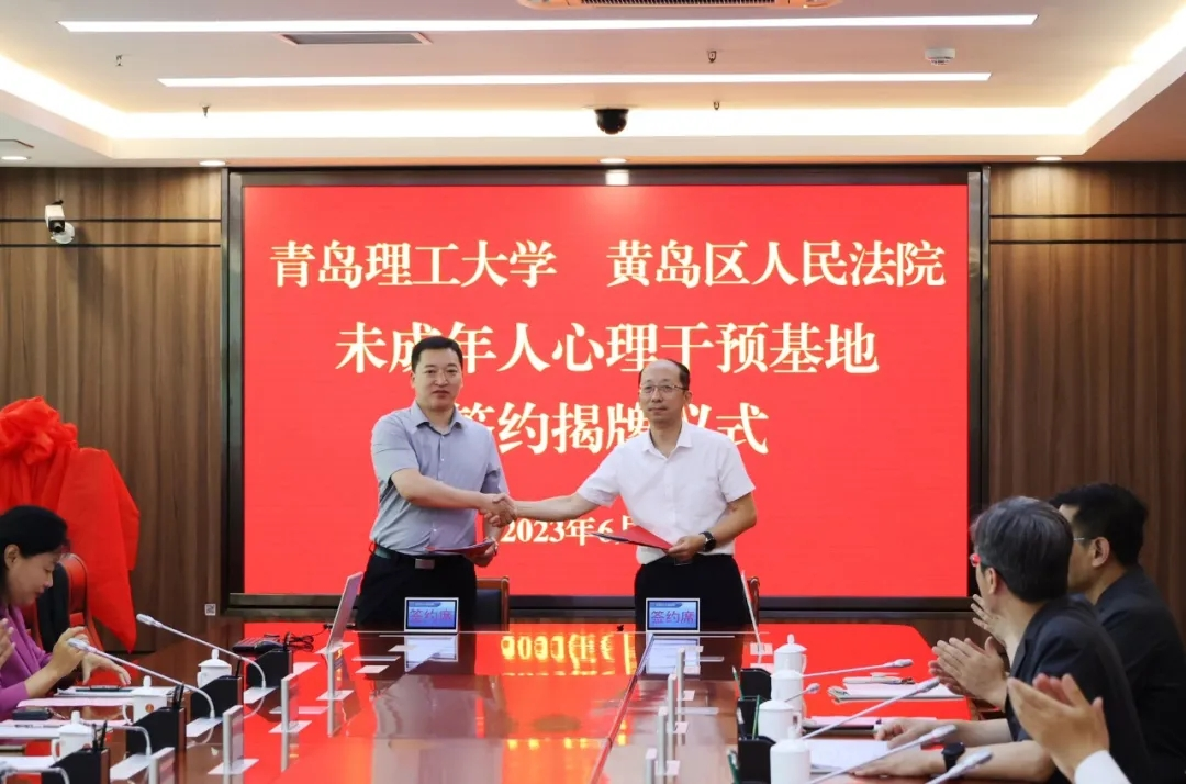 6月15日上午,人文与外国语学院和黄岛区人民法院共建未成年人心理干预基地签约揭牌仪式在黄岛区人民法院举行。人文与外国语学院党委书记卢新明与黄岛区人民法院党组书记、院长曹伟签订共建协议书,并共同为基地揭牌。人文与外国语学院副院长杨书胜和曹伟分别致辞。青岛中院少审庭庭长任道亮、副庭长高广鹤、市公安局一级警长(挂职)窦晋蕾,区教体局二级调研员刘琼山、团区委副书记王静、区妇联副主席谭晓、区关工委副秘书长黄彩霞,人文与外国语学院社会工作专业教师刘世颖、刘志燕等参加活动。黄岛区人民法院副院长唐晓鲁主持仪式。