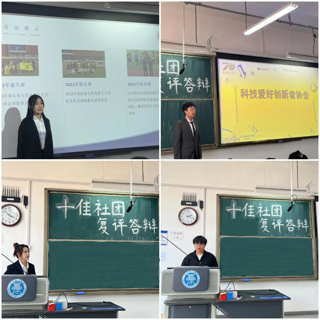 展社团风采,显青春活力。为促进学生社团规范化建设,深化学生社团育人功能,发挥榜样示范作用,近日,校团委开展了2022-2023学年十佳学生社团评选答辩会,安全管理处副处长申维东、学生工作处副处长丁于娟、团委副书记李晓霞、宣传部校报编辑部副主任王云霞以及团委社团管理部部长刘芳兵担任答辩评委。