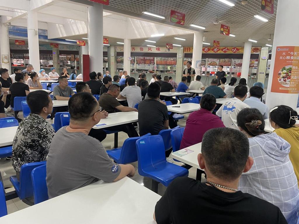 为保障此次消防安全应急疏散演练活动有序开展,演练开始前,消防科科长李威,饮食管理服务中心食品安全员白旭鹏对各食堂从业人员进行了消防安全培训,详细讲解了学校食堂可能发生的火灾情形和科学处置方法。