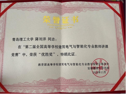 近日,第二届全国高等学校建筑电气与智能化专业教师讲课竞赛在天津城建大学举行,kaiyun官网信息与控制工程学院建筑电气与智能化专业李杨、张冀、蒋刘洋三名教师凭借其卓越的教学能力和创新的教学方法,从众多参赛者中脱颖而出,分别荣获一等奖、二等奖和优胜奖。